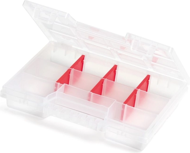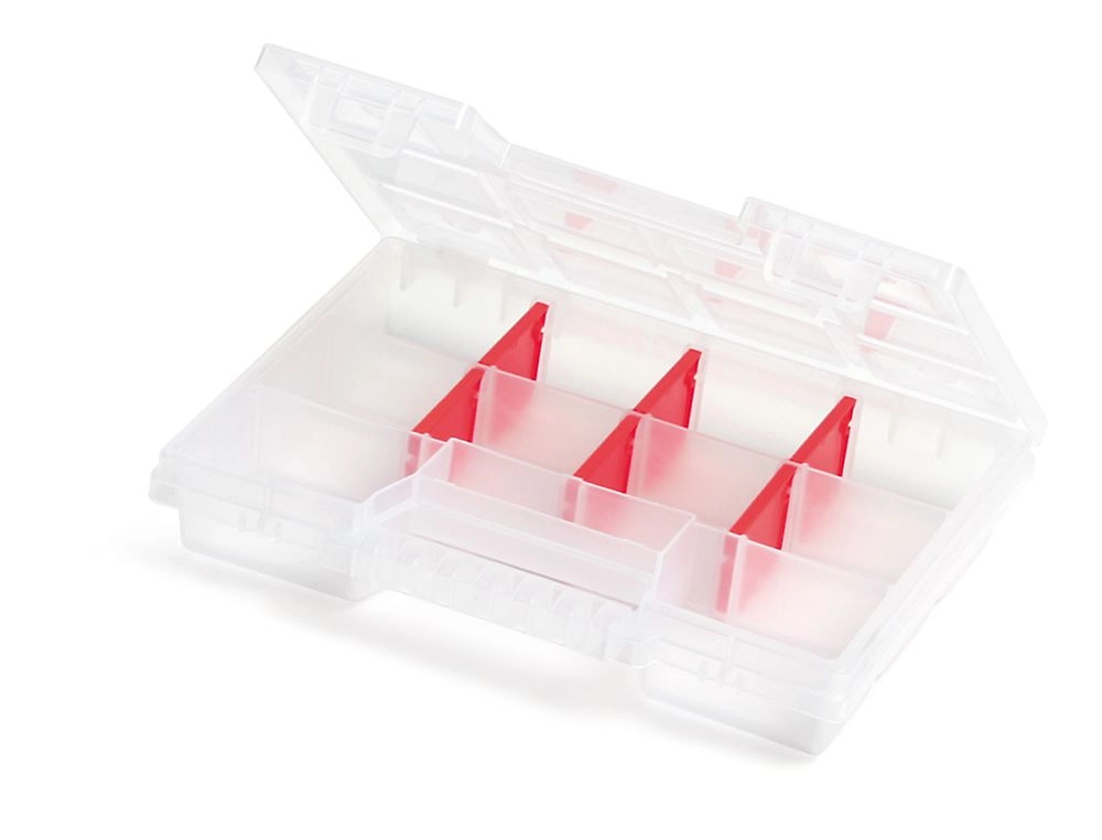 Den praktiske plastorganisator NORT med 10 rum er ideel til overskuelig opbevaring af skruer, møtrikker eller elektroniske komponenter. Takket være det gennemsigtige design har du øjeblikkeligt overblik over indholdet uden at åbne. Aftagelige skillevægge gør det muligt fleksibelt at tilpasse rummenes størrelse, mens de kompakte mål og lave vægt sikrer nem transport. Den robuste plastkonstruktion og det praktiske håndtag gør denne organisator til en pålidelig hjælper derhjemme, i værkstedet og i felten.