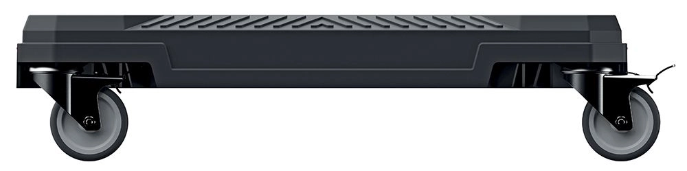 Den forstærkede konstruktion af slagfast plast med skridsikker tekstur sikrer lastens stabilitet, mens fire drejelige hjul giver jævn og præcis bevægelse på plane gulve. Kompatibilitet med X BLOCK, X BLOCK SOLID og MODULAR SOLUTION gør det muligt at fastgøre og stable bokse sikkert i et sammenhængende organisationssystem.