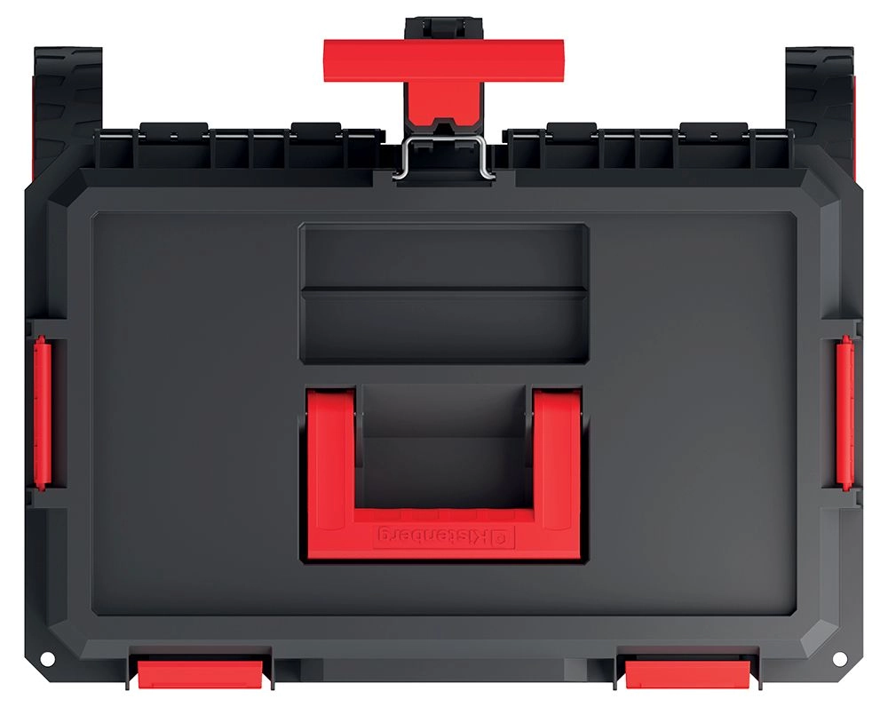 Forstærkede hjørner, solidt låg og sikre lukkebøjler beskytter indholdet mod stød og holder værktøjet sikkert lukket under transport.