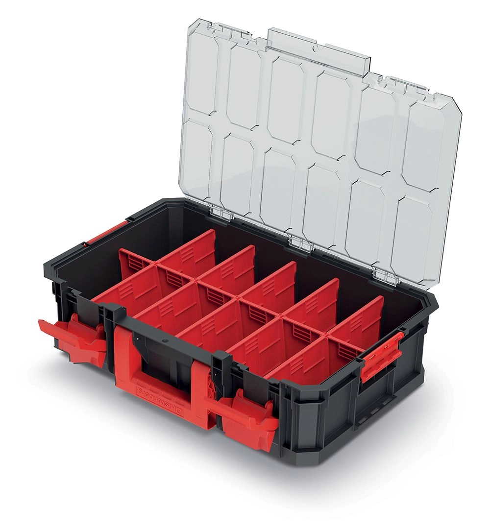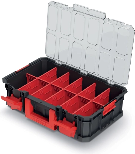 Praktisk modulær transportboks til overskuelig opbevaring og sikker transport af værktøj og småmateriale. Tilbyder aftagelige skillevægge for fleksibel inddeling, gennemsigtigt låg i polycarbonat for hurtigt overblik uden at åbne samt robuste ABS-låse med metalhængsler for lang levetid. Takket være det ergonomiske håndtag er den nem at bære, og inden for et modulært system kan den let kobles sammen med andre bokse.
