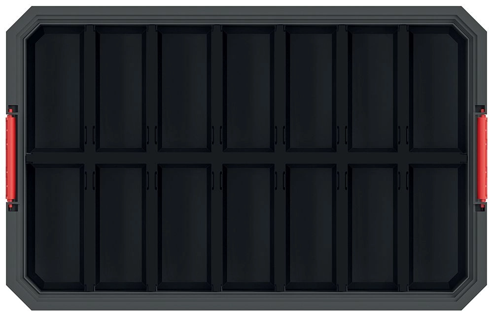 Forstærkede vægge og solide røde låse holder indholdet sikkert, selv ved hyppig transport. Ideel til værktøj og materialer i krævende brug.