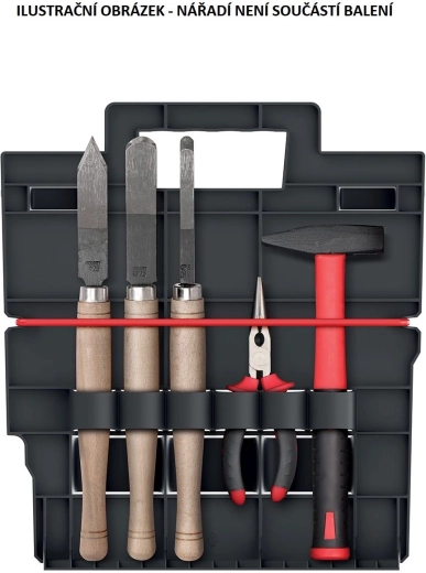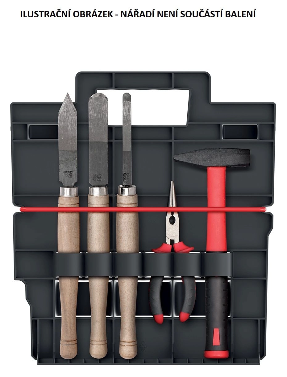 Praktisk og let bærbar værktøjsorganizer Modular Solution til overskuelig opbevaring af håndværktøj. Takket være de kompakte mål og en vægt på kun 380 g er den nem at bære, det slidstærke plast sikrer lang levetid, og kompatibiliteten med moduler og kasser i Modular Solution-serien gør den let at integrere i større opbevaringssystemer.