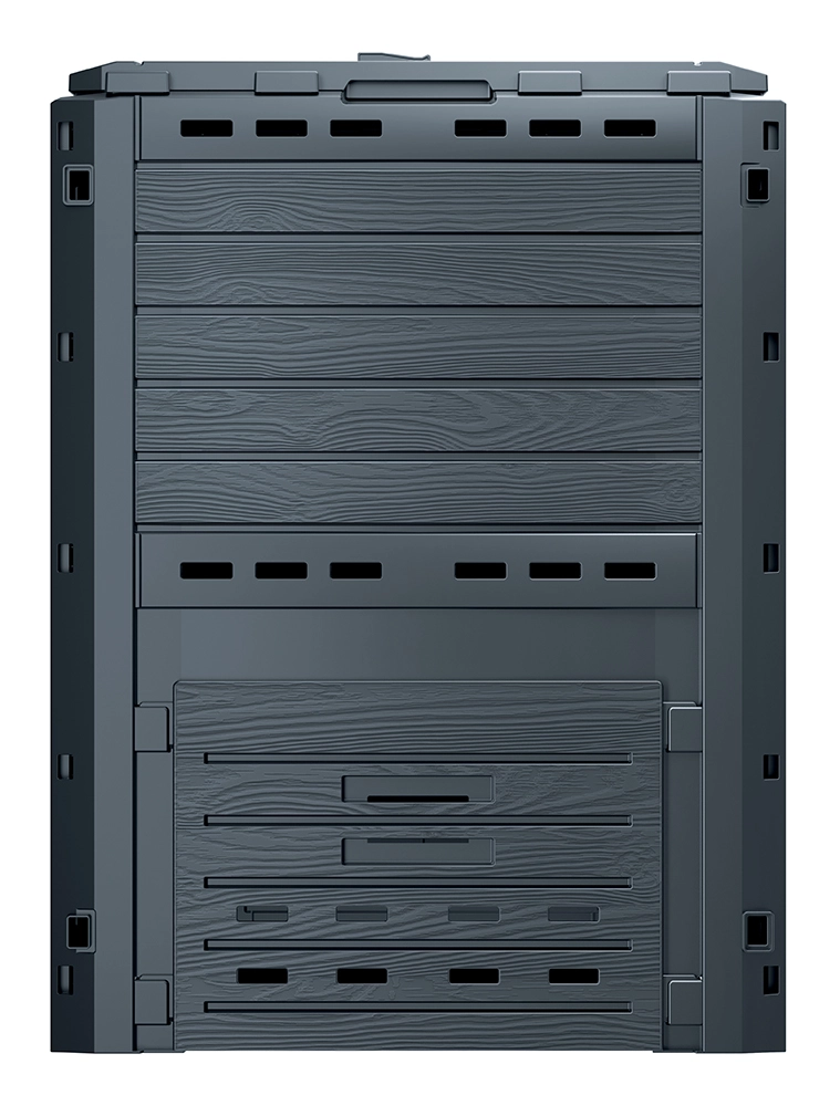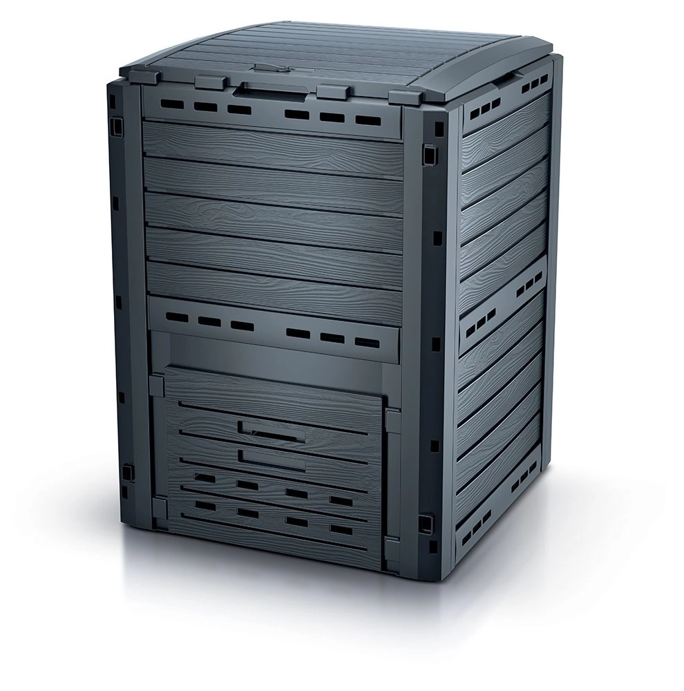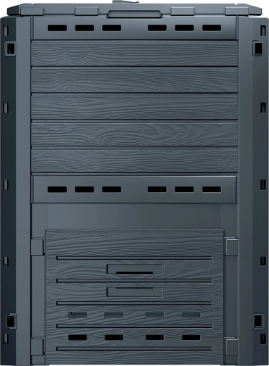 COMPOGREEN WOODY kompostbeholder 280 l er en pålidelig løsning til hjemmekompostering af blade, afklippet græs og køkkenrester. De solide plastpaneler med træinspireret design i antracit passer smukt ind i haven og modstår samtidig regn, frost og UV-stråling. Takket være gennemtænkt ventilation modner komposten hurtigt, så du får næringsrig humus til både bede og græsplæne.
