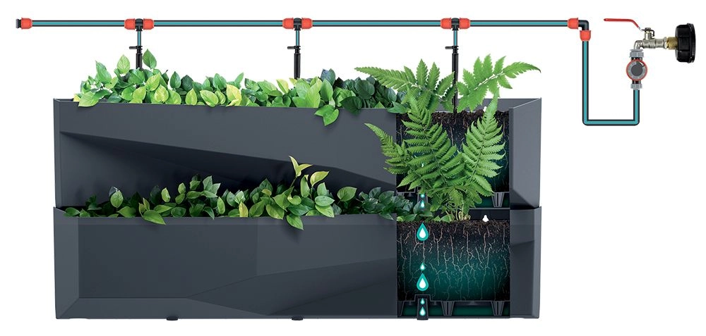Forbind flere sæt og skab en kompakt, vertikal have skræddersyet til dine behov – fra en urtevæg til rigt beplantede prydarrangementer.