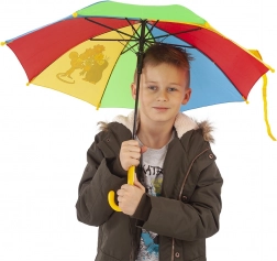Ikke mere stress før en byge – børneparaplyen med KRTEK-motiv er praktisk, let og sikker til hverdagsbrug. De farverige paneler med glade illustrationer vækker glæde, og det gule, buede håndtag passer perfekt til små hænder.