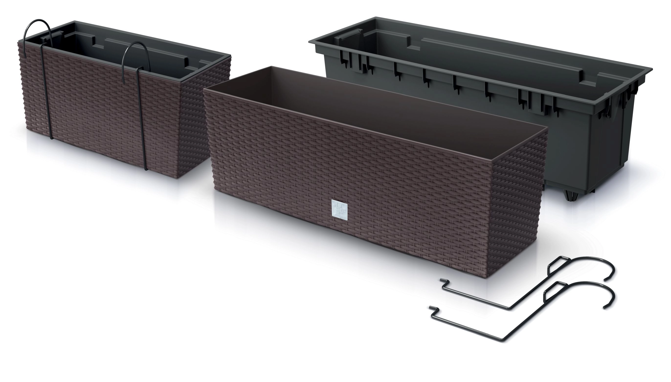 Den teksturerede overflade efterligner troværdigt rattan og er samtidig fremstillet af holdbar plast med UV-beskyttelse. Kassen bevarer farve og form hele sæsonen.