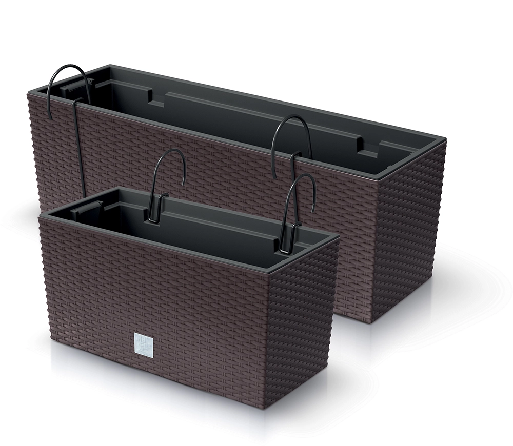 Den hængende altankasse RATO CASE W i antracit kombinerer et moderne rattan-look med praktisk funktion til daglig brug. Fremstillet af kvalitetsplast, der tåler UV-stråling og vejrpåvirkninger, så farve og form bevares i lang tid. Metalkrogene muliggør hurtig ophængning på gelænderet, mens den interne, solide indsats gør beplantning, vanding og rengøring nemmere.