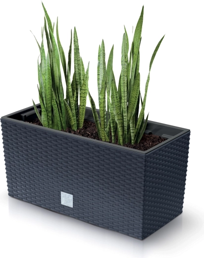 Den stilfulde altanblomsterkasse i farven umbra efterligner rattan på en naturtro måde og giver din altan, terrasse eller vindueskarm et moderne, naturligt udtryk. Takket være kvalitetsplast er den modstandsdygtig over for vejr og UV-stråling, så den bevarer farve og form i lang tid.