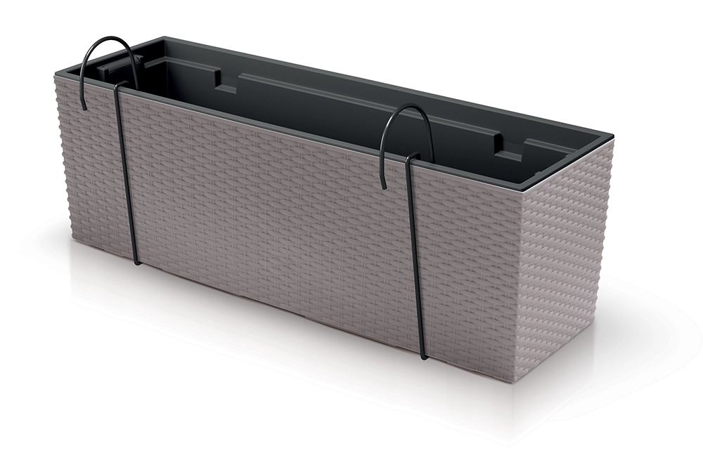 Skab en grøn oase på altan eller terrasse med en elegant hængende altankasse med naturtro imitation af rattanflet. Takket være de kompakte mål og kroge til gelænder sparer du plads og får samtidig et dekorativt element, der passer til både moderne og naturlige udemiljøer.