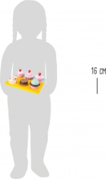 Small Foot-sættet med søde kager vil glæde alle små konditorer og værter. På den solide bakke kan børn servere 6 charmerende desserter, som takket være velcro kan skilles ad og samles igen i nye kombinationer. Legen understøtter naturligt finmotorik, kreativitet og sociale færdigheder.