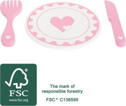 Det lille træservice er dekoreret med hjerter og lavet af 100% FSC®-certificeret træ. Ikke alene vil børn glædes over det smukke design, men de vil også lære noget om økologi og bæredygtighed.