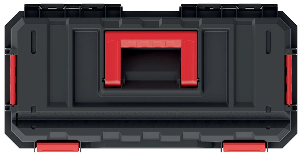 Det ribbede kabinet af slagfast plast og forstærkede hjørner beskytter indholdet mod stød og forlænger kassens levetid – selv under krævende forhold.
