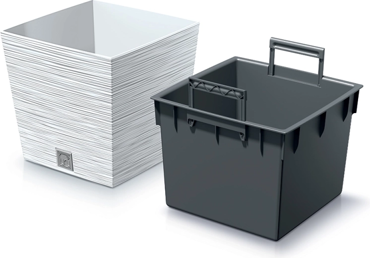 Den teksturerede overflade med vandrette riller giver plantekassen et moderne look, forbedrer grebet og er let at holde ren.