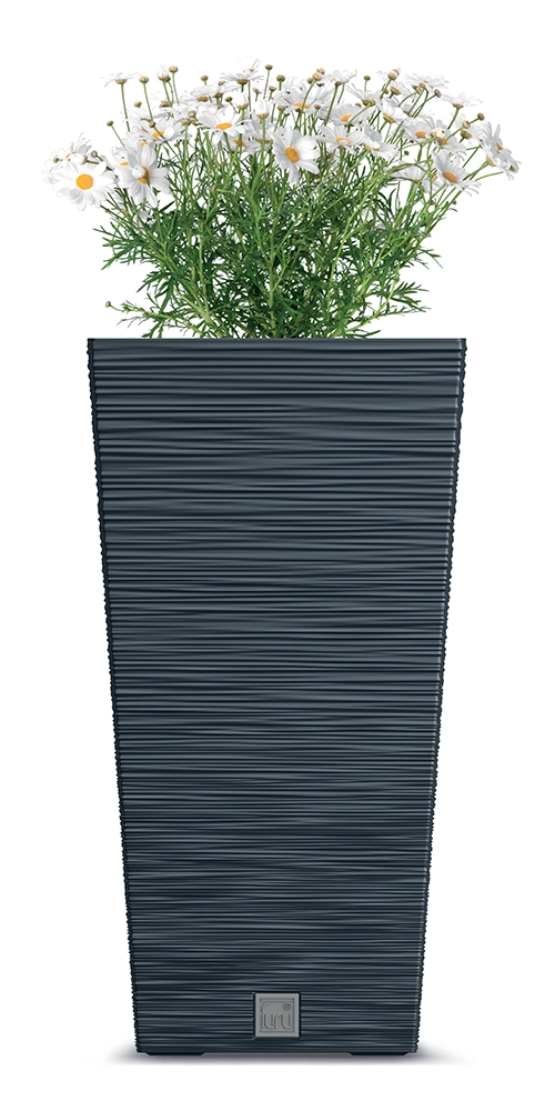 Furu Square er en høj, rektangulær plantekasse med en elegant riflet overflade, der passer perfekt til både moderne og minimalistisk arkitektur. Den indvendige aftagelige indsats med håndtag gør ompotning, vanding og sæsonskifte af planter nemt. Den robuste plastkonstruktion egner sig til lejligheden, altanen, terrassen og ved indgangen.