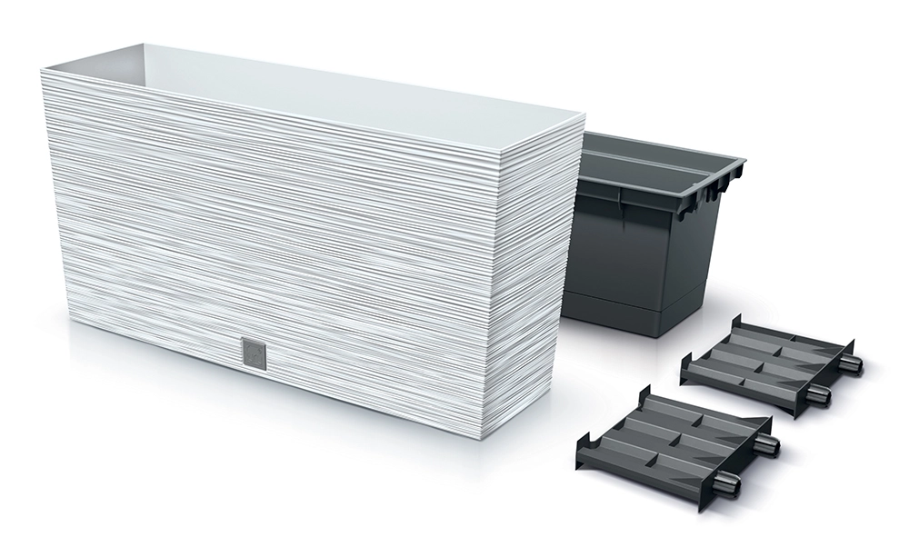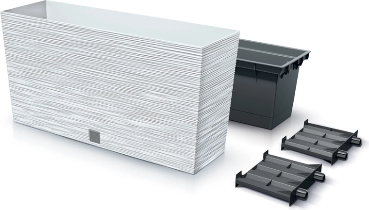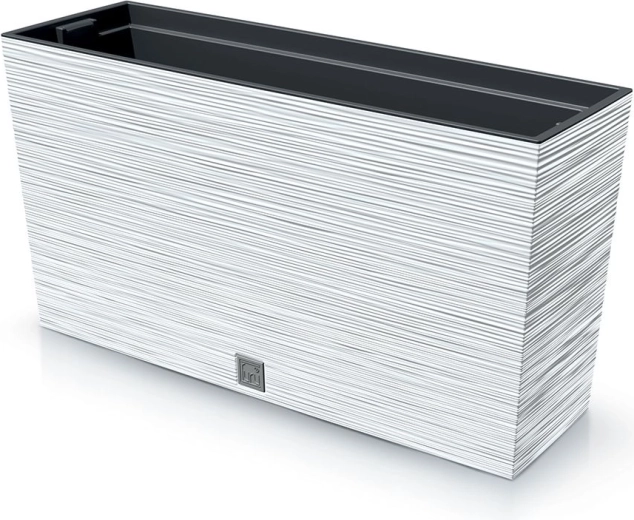 Den stilfulde altankasse Furu M med en længde på 77 cm i elegant hvid er ideel til altan, terrasse og indendørs brug. Den riflede overflade giver et moderne udtryk og øger stabiliteten. Det holdbare plast med UV-beskyttelse sikrer lang levetid, og den praktiske indre indsats gør plantning og vedligeholdelse nemmere.