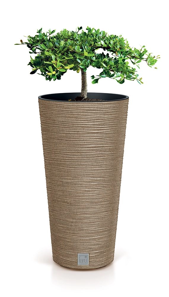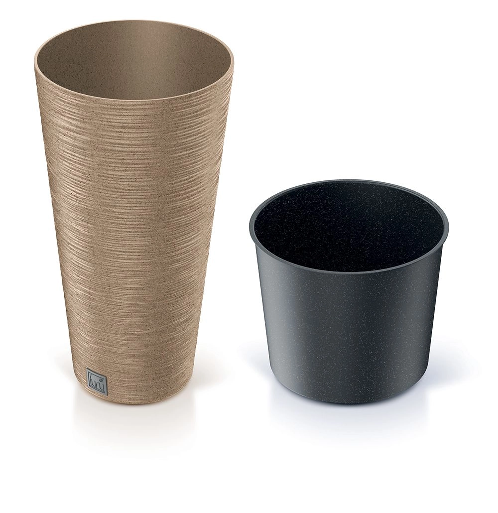 Furu Slim Eco Wood 30 cm forener naturlig æstetik med funktionalitet. Den let riflede overflade i farven naturo minder om træ, mens kvalitetsplast sikrer nem vedligeholdelse, vejrbestandighed og lang levetid. Den slanke, koniske form virker elegant i både moderne og klassiske rum.