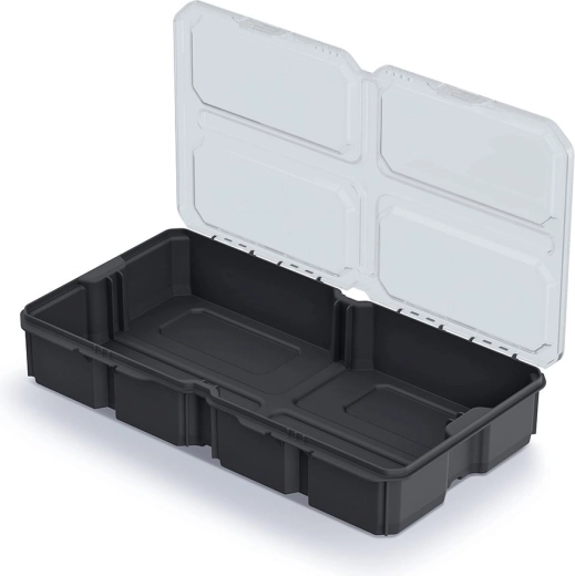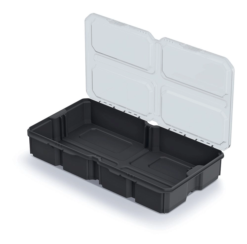 Bevar overblikket over hver eneste skrue. Organizer Prosperplast MSX Box tilbyder en smart løsning til sortering og sikker opbevaring af små dele. Den holdbare plast sikrer lang levetid og lav vægt, mens det sorte låg pålideligt beskytter indholdet mod støv og snavs.