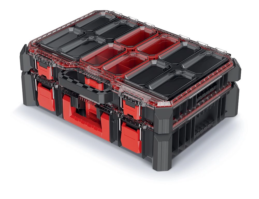 Hold dit værktøj og tilbehør perfekt organiseret. Sættet med to organisere (KMX55408B + KMX554015B) i ensartet sort design byder på smart inddeling, solide lukninger og nem bærbarhed. Takket være de kompakte mål 54,3 × 39 × 20 cm passer det nemt i reolen, køretøjet eller værkstedssystemet.