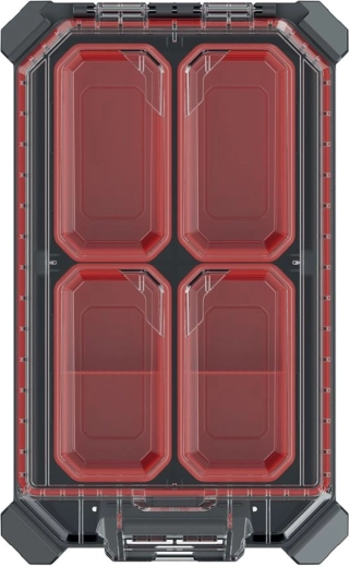 MSX-organizeren er et ideelt valg til både professionelle og hobbyværksteder. Den overskuelige inddeling og den solide konstruktion beskytter indholdet ved både opbevaring og transport. Det gennemsigtige låg af slidstærkt polycarbonat giver hurtig visuel kontrol uden at åbne, og metalhængsler med en solid lukning holder alting sikkert på plads.