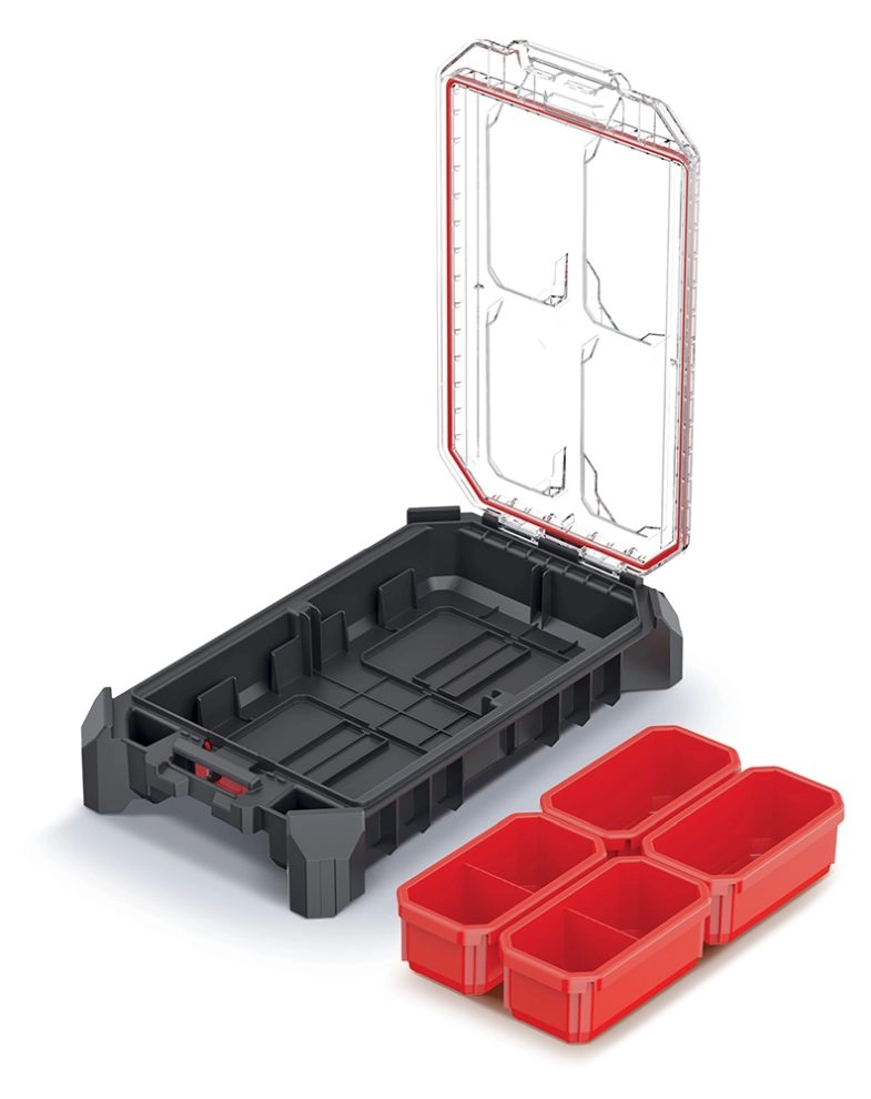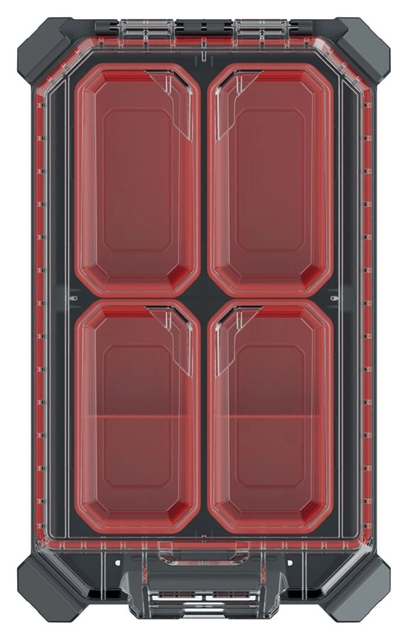 Låget af slidstærkt polycarbonat gør det muligt at tjekke indholdet med et enkelt blik uden at åbne organiseren. Spar tid både på arbejdet og på farten.