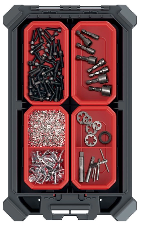 Den inkluderer et modulært låsesystem, som gør det nemt at forbinde organiseren med andre elementer i MSX-serien. Forseglingen mod støv og fugt holder skruer, bits, rawlplugs og småt værktøj tørt og rent – en perfekt løsning til serviceteknikere, håndværkere og hobbybrugere.