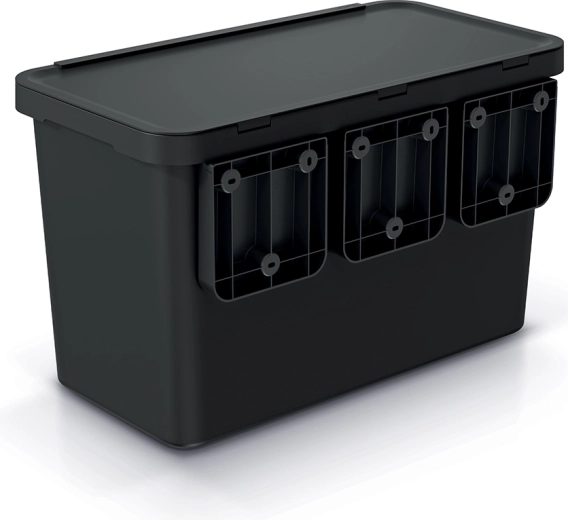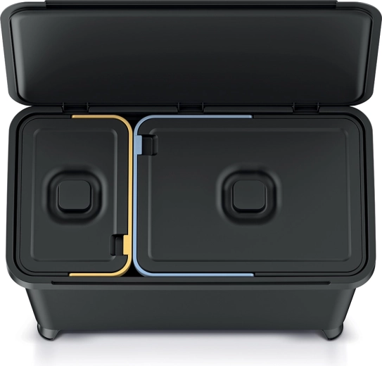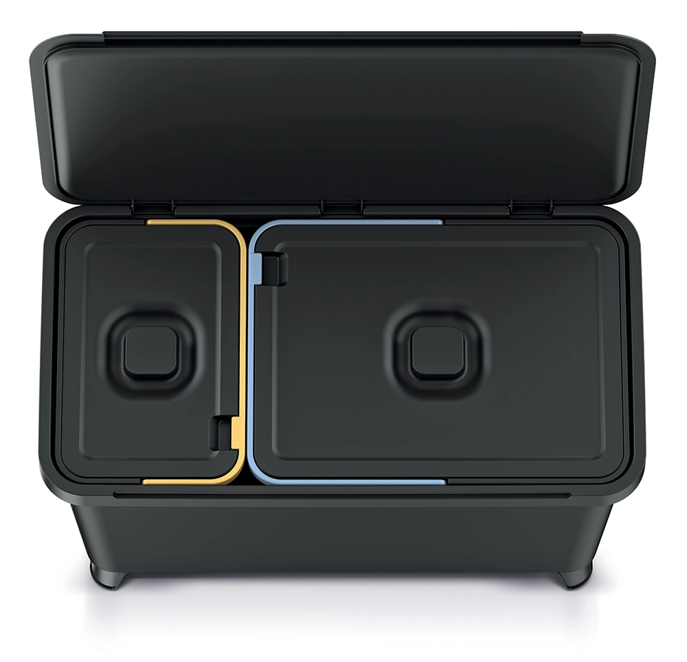 Effektiv affaldssortering uden kompromiser. To adskilte beholdere (10 l + 23 l) gør det nemt at sortere affald efter type. Takket være de solidt integrerede ABS-håndtag er håndtering, tømning og rengøring maksimal nem. Den moderne, genanvendte sorte farve og de rene linjer sikrer, at spanden ikke forstyrrer udseendet i dit køkken, badeværelse eller kontor.