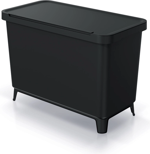Praktisk sorteringsspand til hjemmet med to beholdere på 10 og 23 liter for nem adskillelse af affald. Fremstillet af genanvendt plast med en robust overflade, der er modstandsdygtig over for alkohol, fedt og olie, samt komfortable ABS-håndtag. Kan placeres på gulvet eller monteres på væggen, så du sparer plads, og den passer perfekt ind i enhver indretning takket være den elegante sorte farve og den praktiske modulære konstruktion.