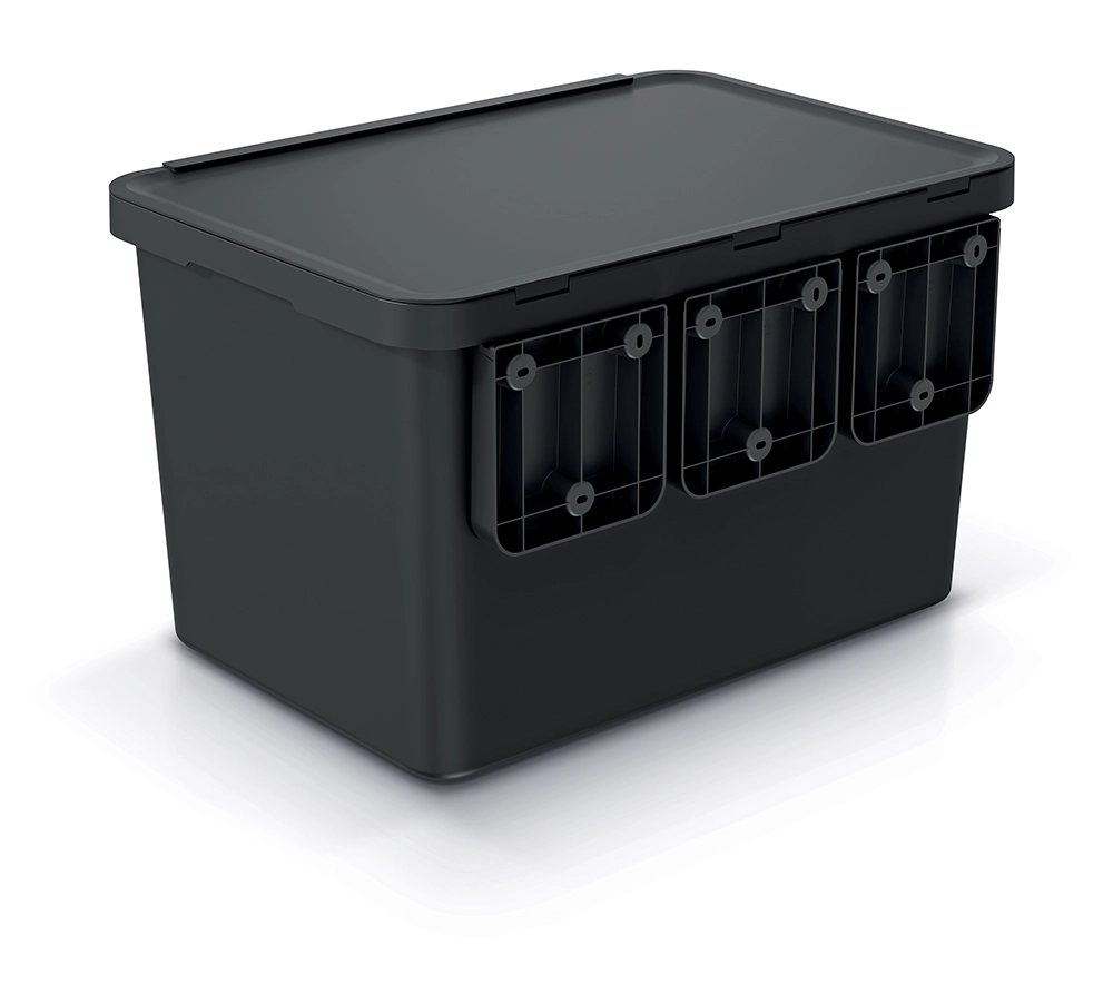 Det øverste låg åbnes let og giver overskuelig adgang til alle rum. Sorteringen bliver dermed hurtig, hygiejnisk og uden unødigt rod.