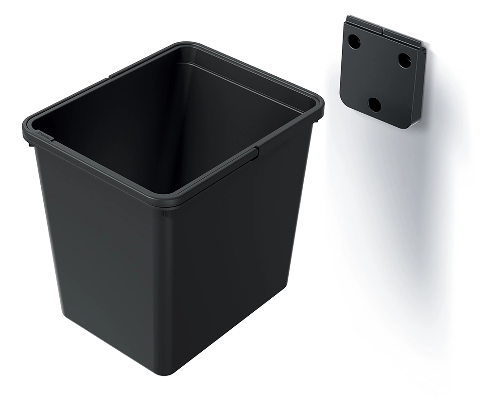 Affaldsspanden Systema Basic med en kapacitet på 23 l er en pålidelig og æstetisk løsning til daglig sortering og indsamling af affald. Den genanvendte sorte farve virker moderne og understøtter samtidig en bæredygtig tilgang til materialer. Takket være de kompakte mål passer den til mindre køkkener, badeværelser og kontorer.