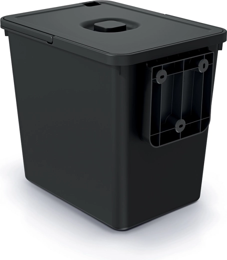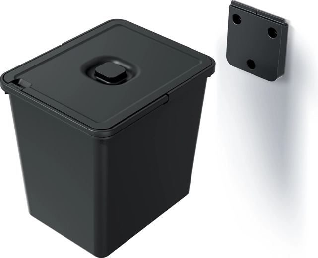Den modulære konstruktion med regelmæssige former gør det nemt at kombinere med andre beholdere i Systema-serien – en ideel løsning til overskuelig sortering. Med mulighed for montering på væg eller møbelfronter kan spanden nemt tilpasses din indretning. Den genanvendte sorte farve og brugen af genanvendte materialer understreger dens miljøvenlige karakter.