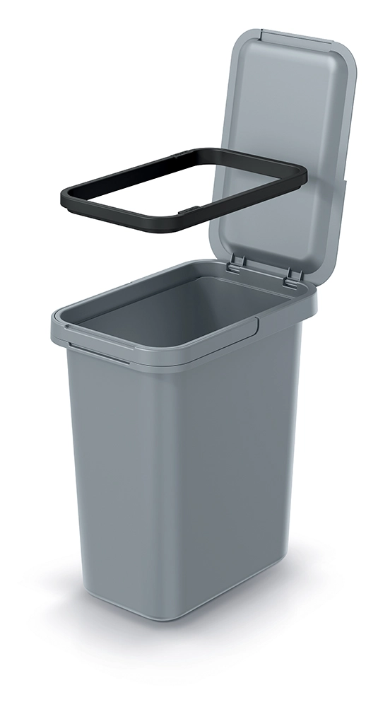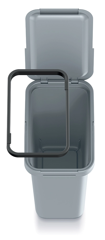 Takket være den indre ramme bliver posen sikkert fastholdt og glider ikke ned, selv når den fyldes. Den glatte overflade af kvalitetsplast minimerer snavsophobning og muliggør nem rengøring med almindelige midler. Systema-seriens modularitet gør det desuden nemt at kombinere flere spande side om side for effektiv affaldssortering.