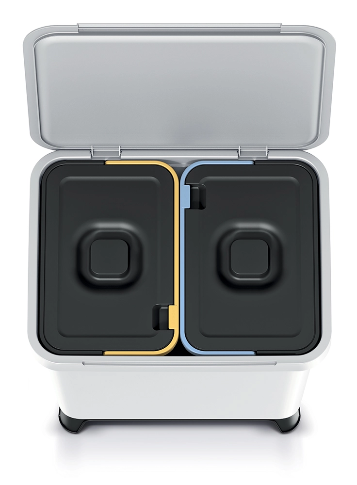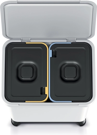 • Effektiv sortering: to separate 10 l indsatser med farvekodning.