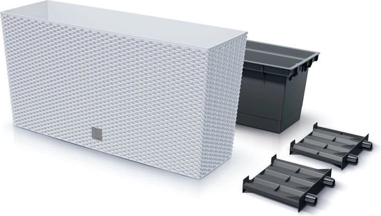 Rato Case M er en moderne altankasse, der kombinerer et stilfuldt rattandesign med praktisk funktionalitet. Den hvide farve virker ren og tidløs, så den passer perfekt på vindueskarm, altan, terrasse og i haven. Den kvalitetsstærke plast modstår regn, sol og frost, hvilket gør den egnet til helårsbrug.
