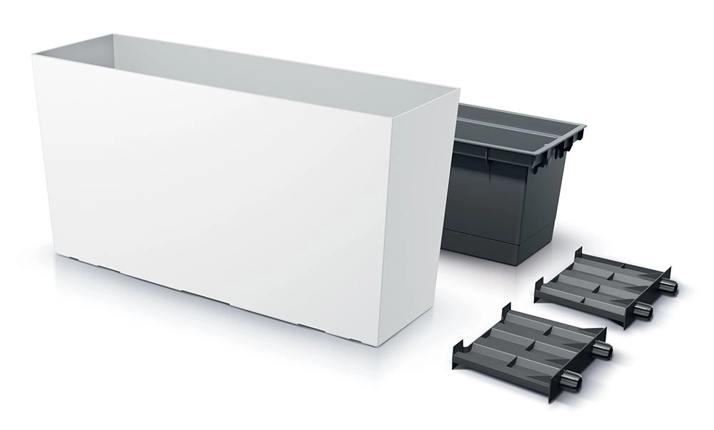 Udnyt pladsen på altanen, terrassen og i haven med URBI CASE M, som kombinerer et rent look og funktionalitet. Takket være plast af høj kvalitet modstår den temperatursvingninger og UV-stråling, så den i længden bevarer sin stabile farve og form. En indsats medfølger, som gør omplantning nemmere og holder substratet på plads.
