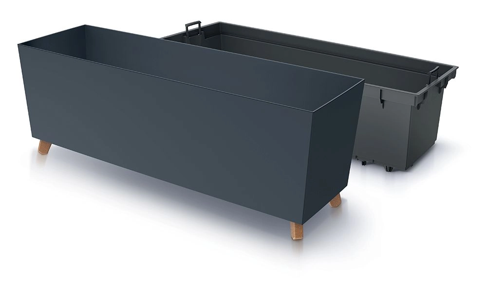 Den praktiske indvendige indsats med greb muliggør hurtig plantning og bekvem vedligeholdelse uden at flytte hele altankassen.