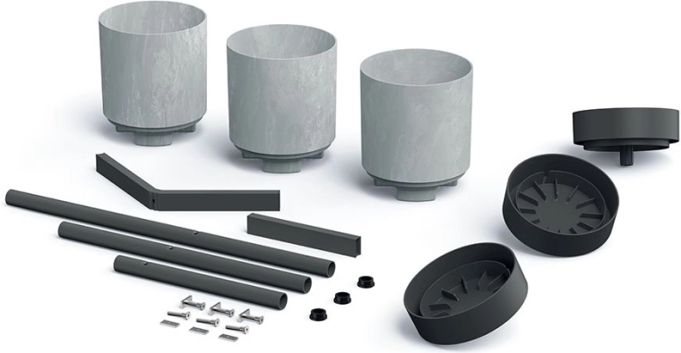 Dette tre-niveaus plantestativ er et ideelt valg til stueplanter, krydderurter og sukkulenter. Kombinationen af en robust metalramme og lette, let aftørrelige plastikpotter i neutral grå passer til både moderne og minimalistiske interiører. Takket være de kompakte mål udnytter det pladsen effektivt på altan, terrasse og i stuen.