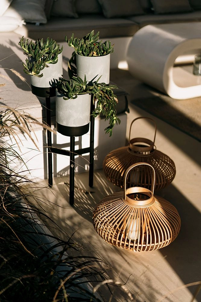 Tre potter i forskellige højder sikrer optimal lysadgang og skaber en visuelt attraktiv komposition, der liver ethvert rum op.