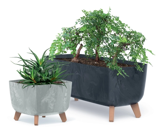 Blomsterkassen Gracia Case med en længde på 39 cm kombinerer et minimalistisk udtryk med praktisk funktion. Overfladen med betonlook passer til moderne indretning, mens fire kraftige ben i trædekor giver stabilitet og en elegant præsentation af planter på vindueskarmen, kommoden, terrassen eller altanen.