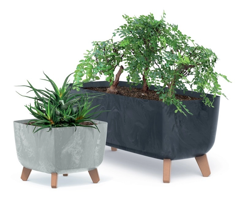 Opdag den stilfulde plantekasse på ben GRACIA CASE, der fuldender både hjem og terrasse. Den glatte overflade, afrundede hjørner og kontrasterende ben i træimitation giver et tidløst udtryk, mens den robuste plast sikrer lang levetid og nem vedligeholdelse.