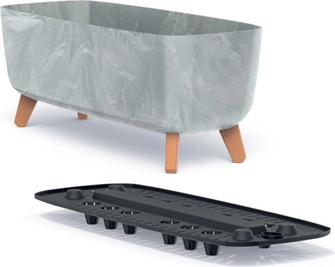 Takket være de forhøjede ben med træeffekt cirkulerer luften bedre under beholderen, og risikoen for overvanding minimeres. Den firkantede form giver god plads til rodsystemet og ser ryddelig ud på vindueskarmen, en hylde eller et udendørs bord.