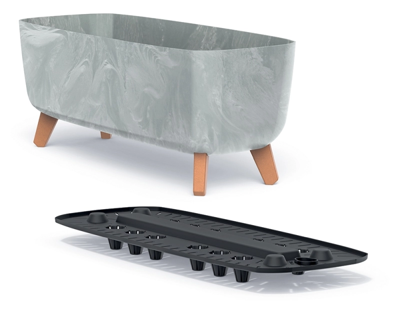 Den forhøjede konstruktion sikrer luftstrøm under plantekassen og hjælper med at forhindre overvanding samt snavs på overflader.