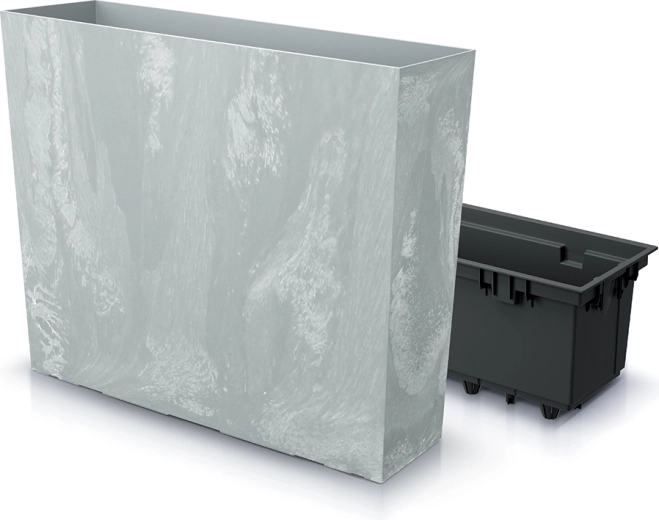 URBI Case Beton Effect T altankassen i antracit kombinerer moderne design med betonlook og maksimal funktionalitet. Takket være plastmateriale af høj kvalitet er den holdbar, samtidig let og egnet til brug på balkoner, terrasser og i interiør. En indsats medfølger, som reducerer forbruget af substrat og gør omplantning og vanding enklere.