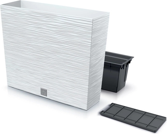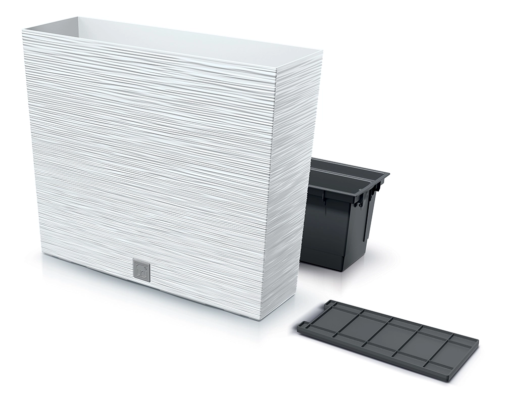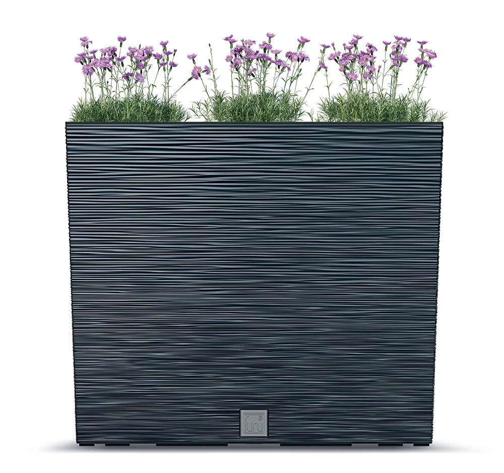 Den elegante rektangulære plantekasse med markant rillet struktur er et flot supplement til altan, terrasse og indgangsparti. Takket være den lette men robuste plast er den modstandsdygtig over for frost og vejr og egner sig derfor til helårsbrug både ude og inde.