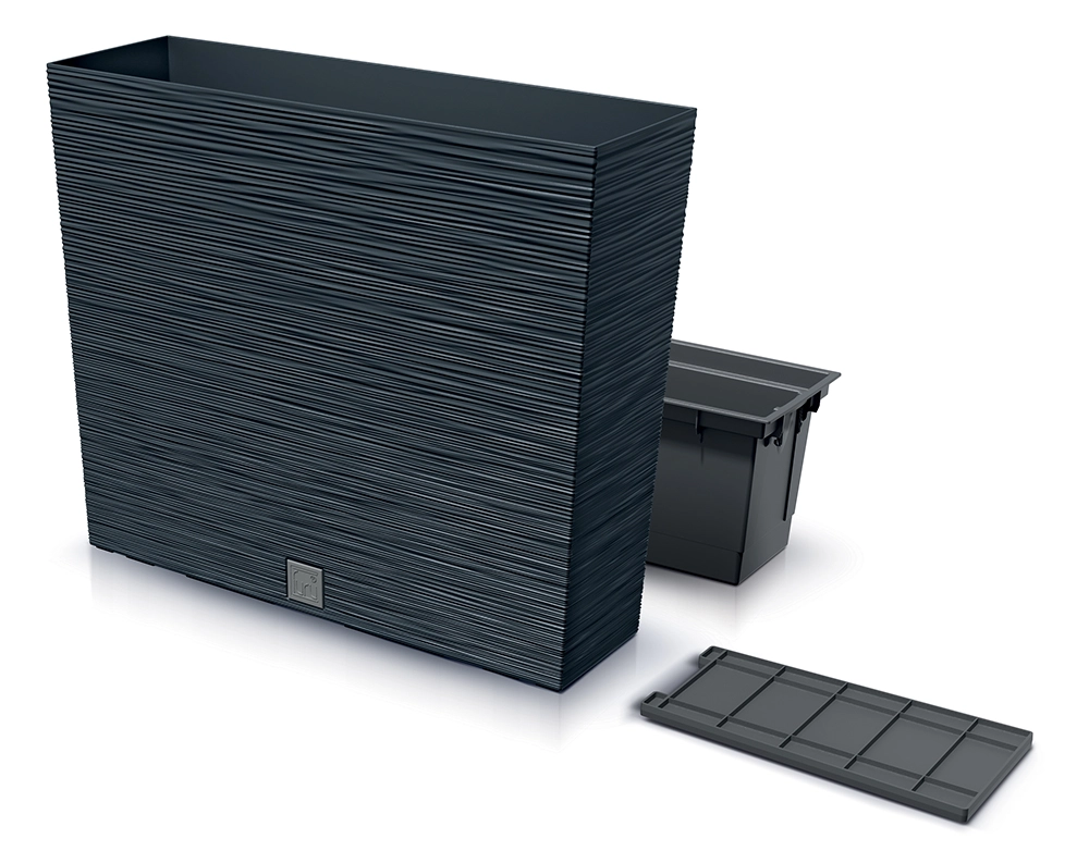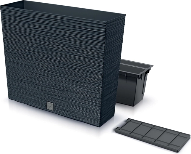 Den stilfulde plantekasse med horisontale riller er ideel til terrasser, altaner, indgange og langs vægge. Det robuste materiale tåler UV-stråling, vejrpåvirkninger og almindelig mekanisk belastning, så den kan bruges året rundt. De rene linjer og kompakte mål passer perfekt til moderne arkitektur og interiør.