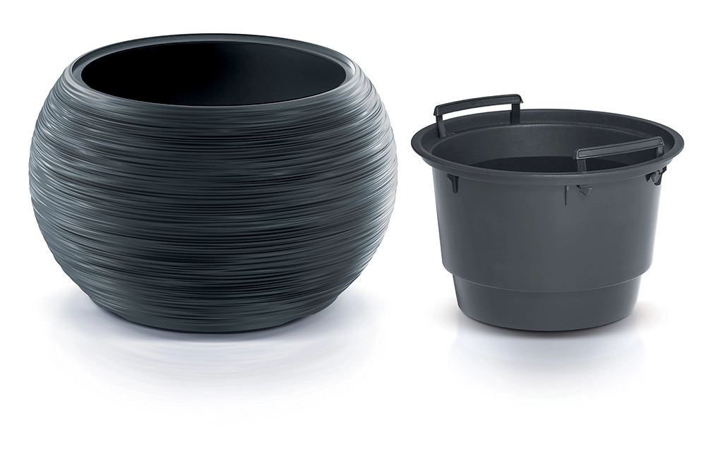 Den aftagelige indsats med greb gør det let at tage planterne ud til vanding, beskæring eller kontrol af dræn og sparer samtidig på substratet.