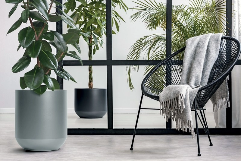 Den glatte cylindriske form og den matte hvide overflade fremhæver planternes grønne nuancer og er lette at kombinere med forskellige indretningsstile.