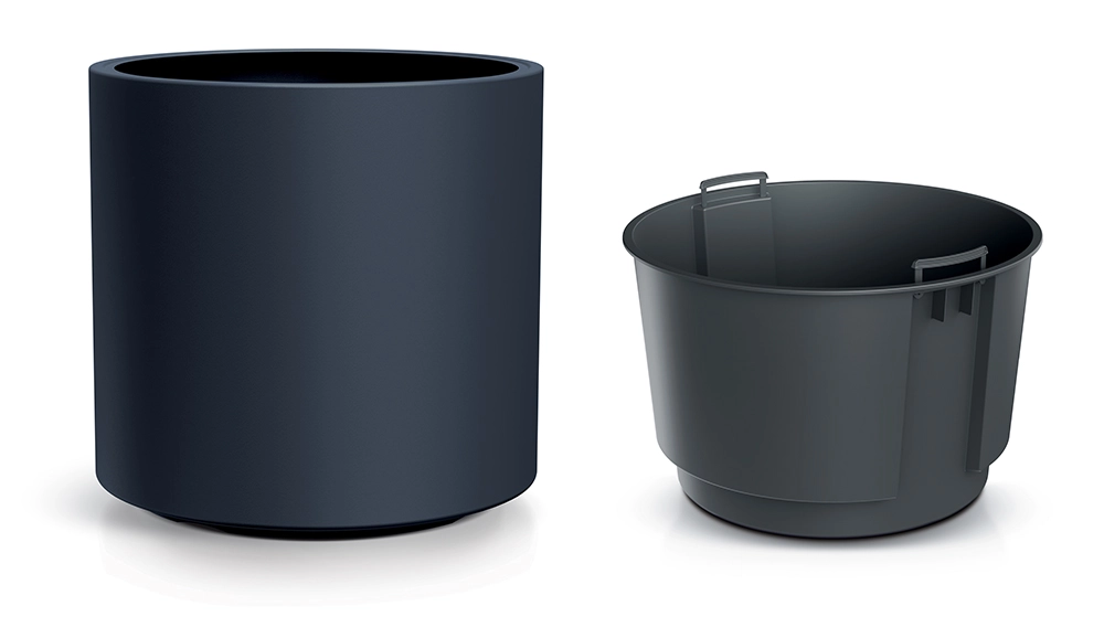 Elegant blomsterpotte med en diameter på 39 cm med praktisk indsats og håndtag – ideel til indendørs brug, terrasse og have. Den er fremstillet af holdbar plast, som tåler frost, høje temperaturer og UV-stråling. Takket være indsatsen sparer du på substratet og får nem håndtering og vedligeholdelse. Dens enkle cylindriske form og glatte overflade passer til både moderne og klassiske omgivelser. Holdbart materiale, praktisk indre indsats, lav vægt og stilfuldt udseende gør denne blomsterpotte til et fremragende valg til daglig brug.