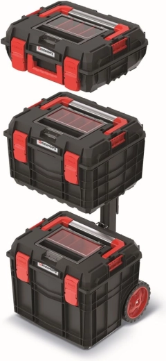 Kufferterne er fremstillet af en polymerblanding med øget styrke, suppleret med elementer af ABS og metalhængsler for lang levetid. Tætning mod støv og vand beskytter indholdet selv under krævende forhold. Den modulære konstruktion gør det muligt at transportere hele sættet som én enhed eller bruge kun den valgte kuffert efter behov.