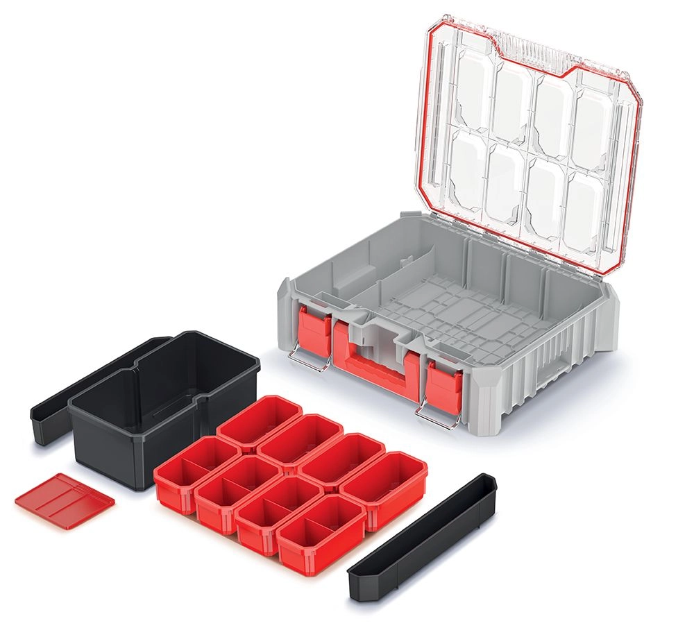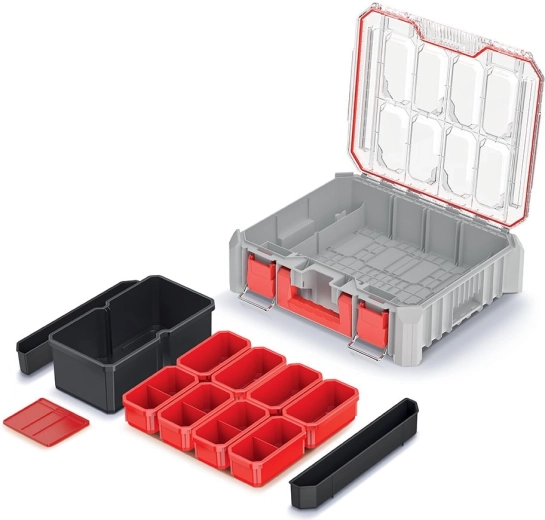 Den praktiske værktøjsorganizer Kistenberg C Block Bridge tilbyder rigelig plads til værktøj og smådele, en robust konstruktion i plast og nem transport takket være det ergonomiske håndtag. De kompakte mål 44,5 × 36,8 × 12,2 cm sikrer let opbevaring, og den grå udførelse giver et professionelt udseende til enhver værksted eller garage.