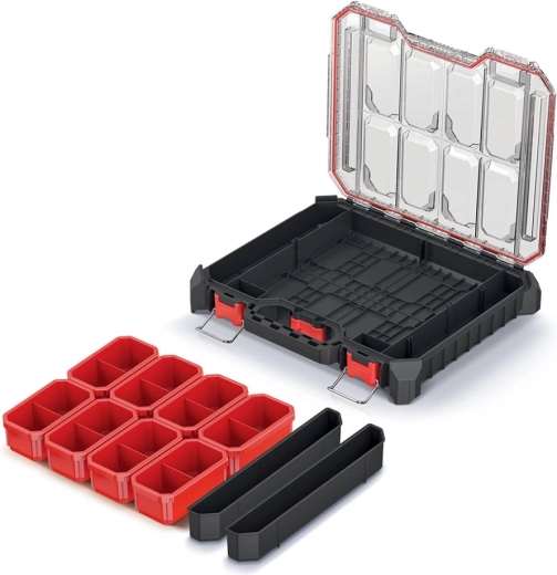 Maksimer orden i dit værksted, din garage og din værktøjskasse. Denne sorte organisator med målene 44,5 × 39 × 7,7 cm er designet til effektiv håndtering af små befæstelseselementer, elektroniske komponenter og tilbehør. Højstærk plast sikrer lang levetid og pålidelighed ved daglig brug.